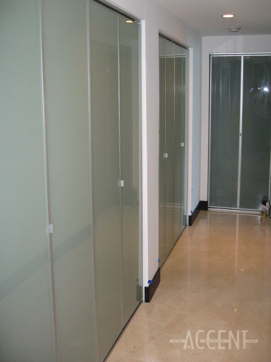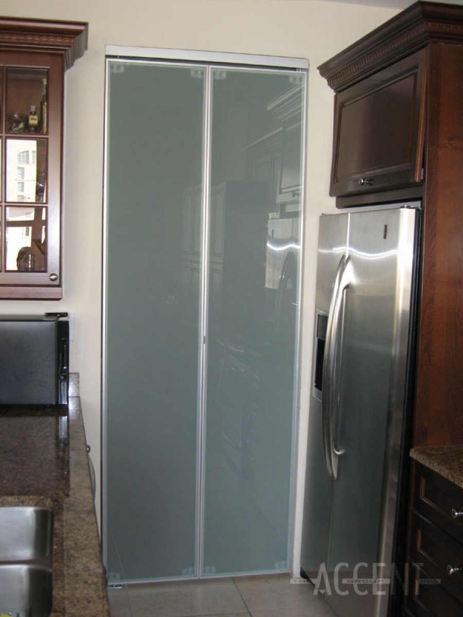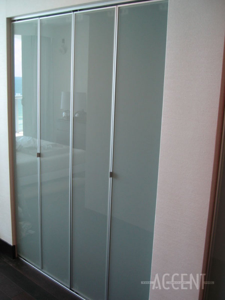 Bi-fold aluminum frame with milky white glass